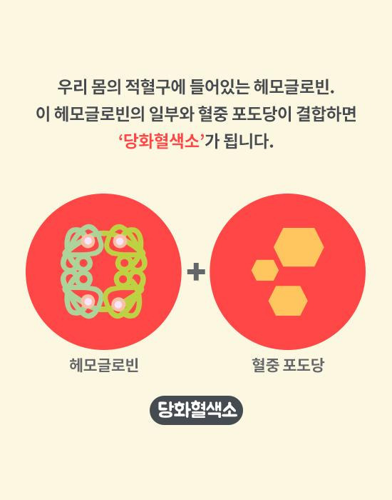 당화혈색소(HbA1c)는 산소를 운반하는 적혈구의 단백질인 헤모글로빈의 한 형태로, 포도당과 화학적으로 연결되어 있습니다. 포도당 수치가 높으면 더 많은 포도당이 헤모글로빈과 결합하여 HbA1c 수치가 높아집니다. HbA1c 테스트는 지난 2~3개월 동안의 평균 혈당 수치를 반영하여 일일 손가락 채혈 테스트나 지속적인 혈당 모니터링보다 혈당 조절에 대한 더 넓은 그림을 제공합니다.